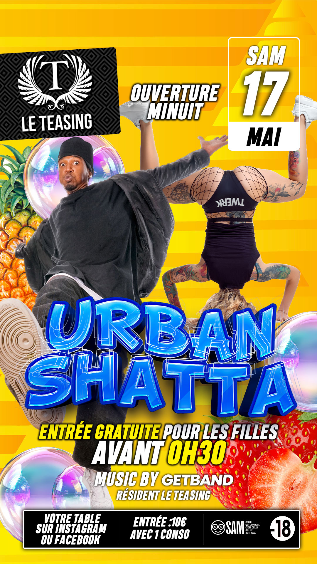 La soirée de référence URBAN SHATTA. Tous les meilleurs sons rap Fr, Shatta, Bouyon, Afro c’est au Teasing que ça se passe!!!