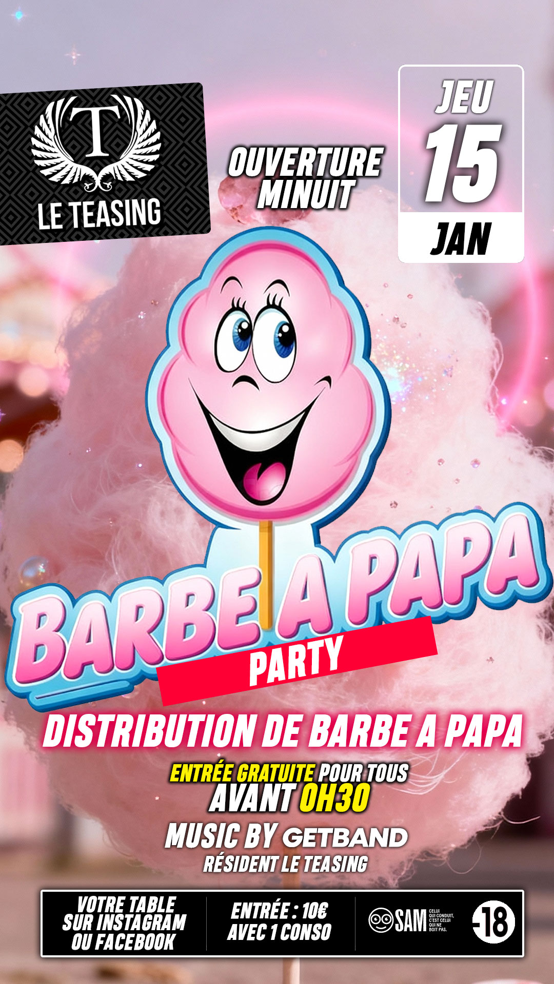 Plonge dans une ambiance rose et sucrée, où la barbe à papa coule à flots et les sons de Getband te feront tourner comme un manège.