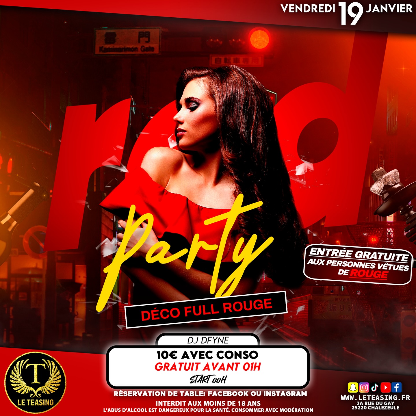 Viens avec ta plus belle tenue rouge pour une Red Party dans un décor Full Rouge!