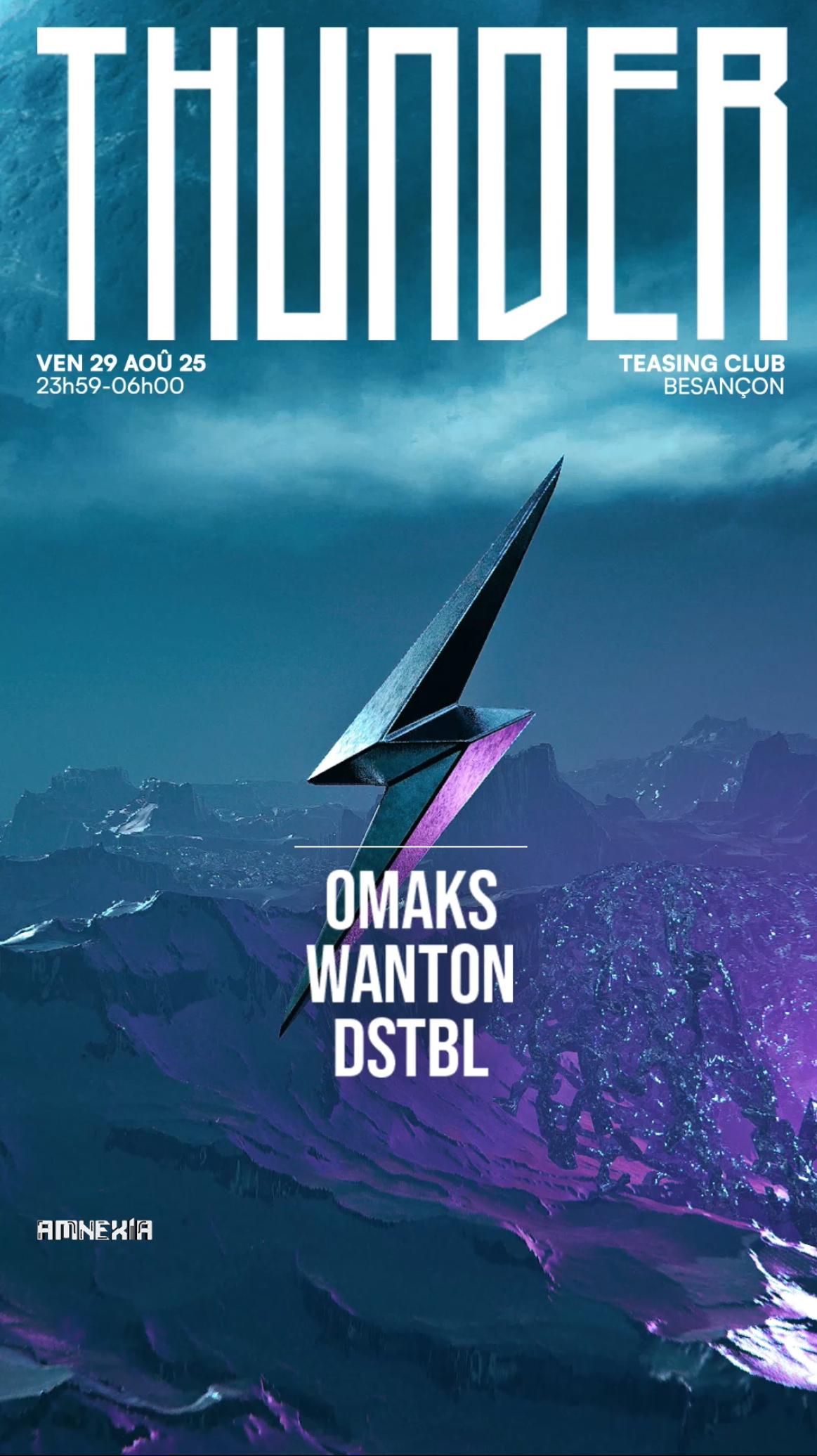 Entre ombre et lumière, THUNDER prône une Techno actuelle, éclectique et électrisante dans un cadre unique ou respect, plaisir et bienveillance se mélangent. Le Vendredi 29 Août, THUNDER fête sa rentrée au TEASING CLUB de Besançon pour une rave de 7 heures avec le meilleur de la scène actuelle !
